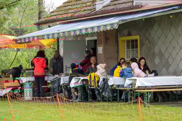 nur für das leibliche Wohl der Vierbeiner war gesorgt. So konnten sich Herrchen und Frauchen mit einem Schnitzelbrot verwöhnen oder sich am Kuchenbuffet bedienen.
