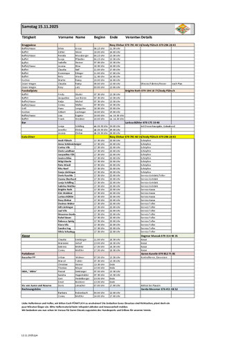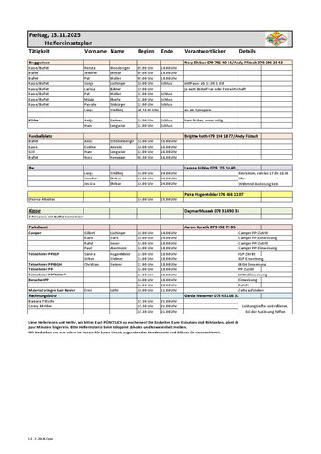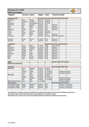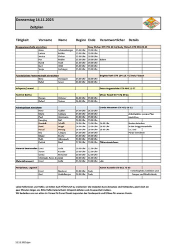 paar Minuten länger ein. Seid flexibel - es kann sein, dass wir Euch vielleicht an einem andern Ort einsetzen müssen, vor allem in der Festwirtschaft. Bei Verhinderungen meldet Euch bei Euren Verantwortlichen!
