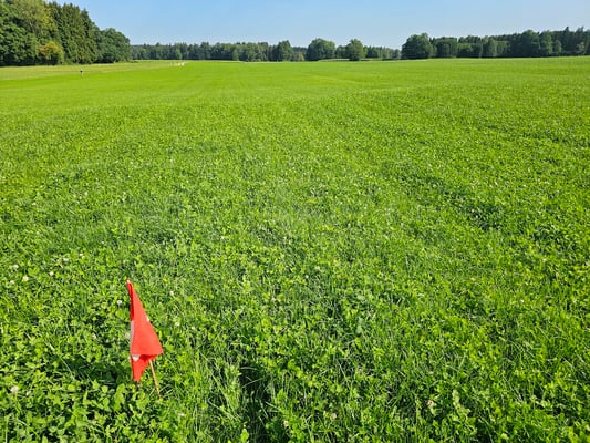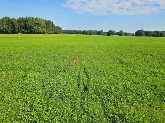 Für die Fährten und die Reviere haben wir in der nähreren Umgebung superschöne, fette, grüne Wiesen.